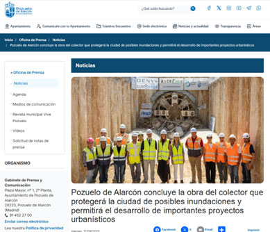 Pozuelo de Alarcón concluye la obra del colector que protegerá la ciudad de posibles inundaciones y permitirá el desarrollo de importantes proyectos urbanísticos” (12/09/2025) Noticias Ayuntamiento Pozuelo de Alarcón. https://www.pozuelodealarcon.org/oficina-de-prensa/noticias/pozuelo-de-alarcon-concluye-la-obra-del-colector-que-protegera-la-ciudad-de-posibles-inundaciones-y-permitira-el-desarrollo-de-importantes